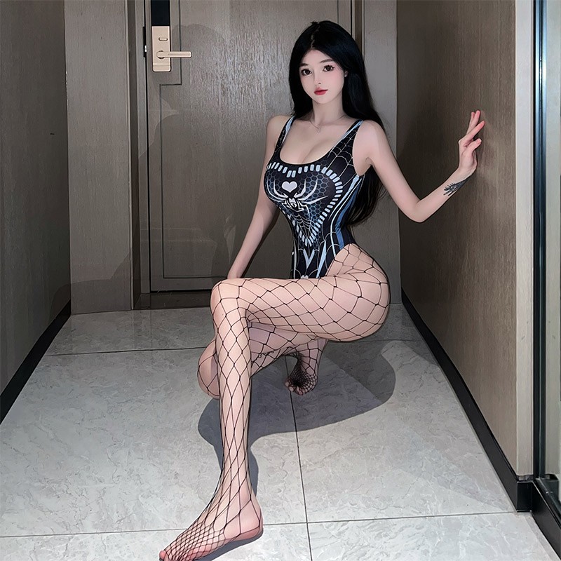 霏慕 情趣内衣女户士制服诱惑女仆连衣裙角色扮演制服性感露背套装免脱开裆丁字裤夫妻房事调性家居情趣用品 勾魂蜘蛛精【暗扣开裆连体衣】+贈渔网袜