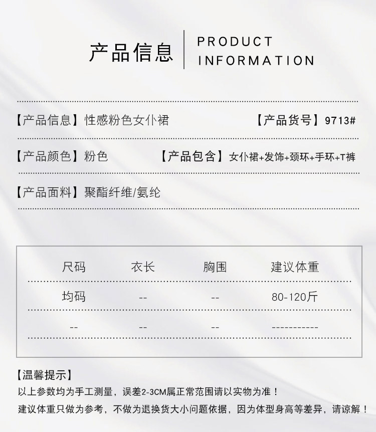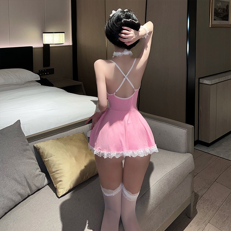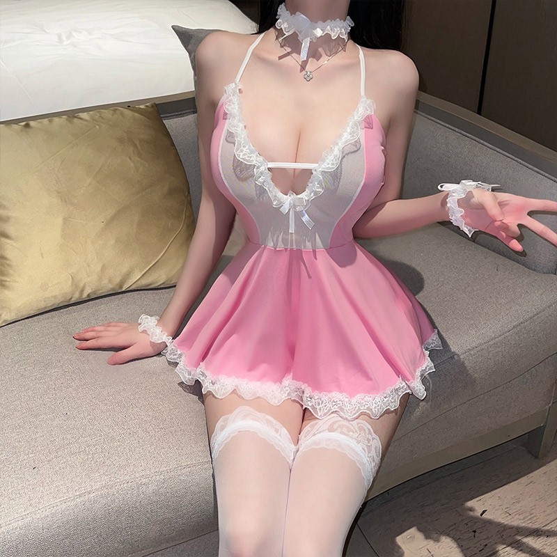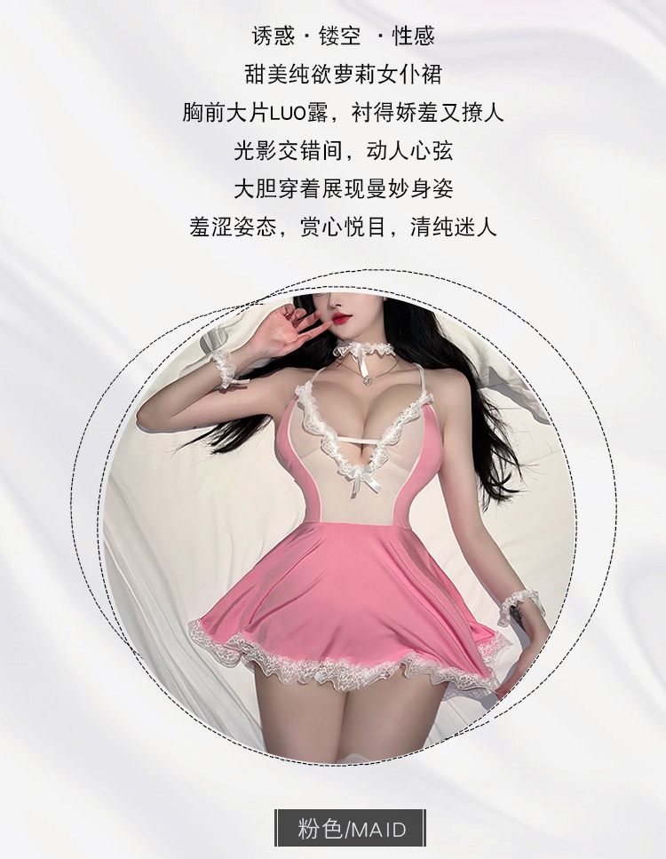 性感睡衣蕾丝内衣镂空黑色连体衣服性感女仆女佣制服装纯欲风 粉色 均码