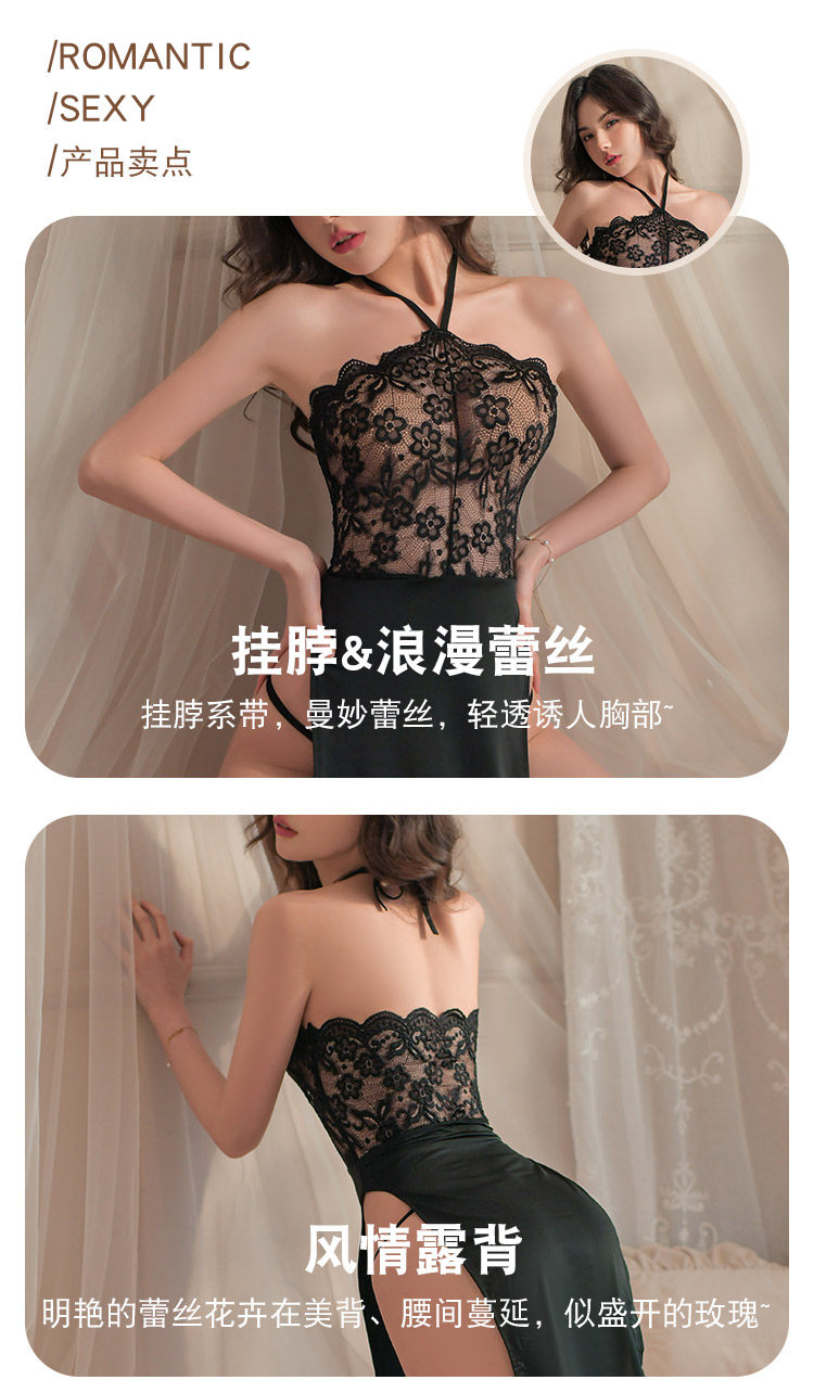 洛蔓希 情趣内衣 性感蕾丝开档连体衣制服诱惑 吊带镂空情趣睡裙 情趣套装H9932