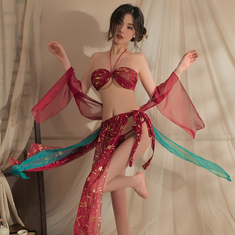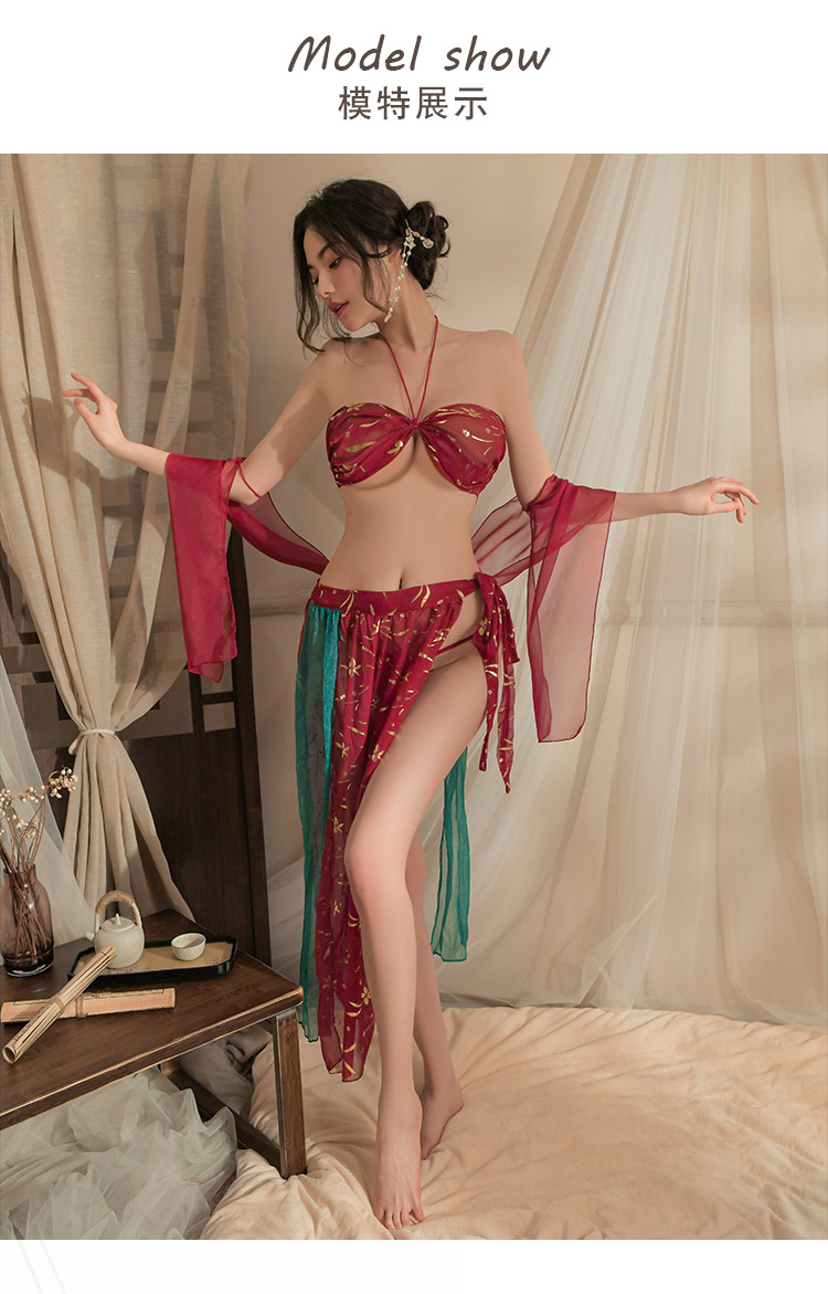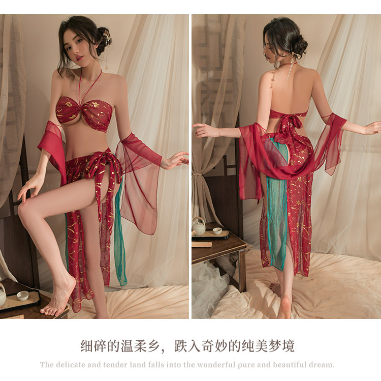 洛蔓希 情趣内衣 性感肚兜古装宫廷风纯欲汉服情趣睡衣 敦煌飞天凤女情趣睡裙套装W9993