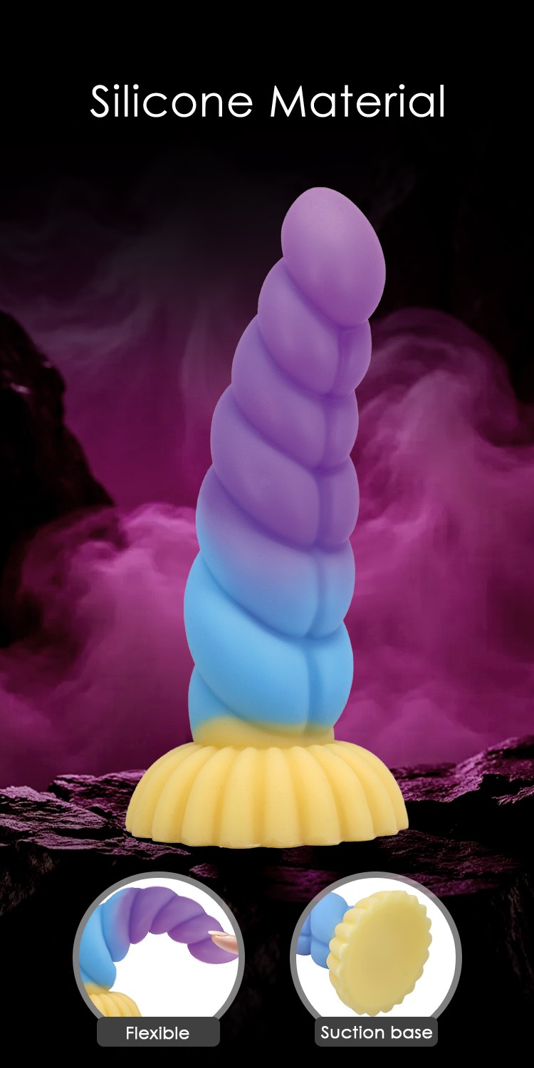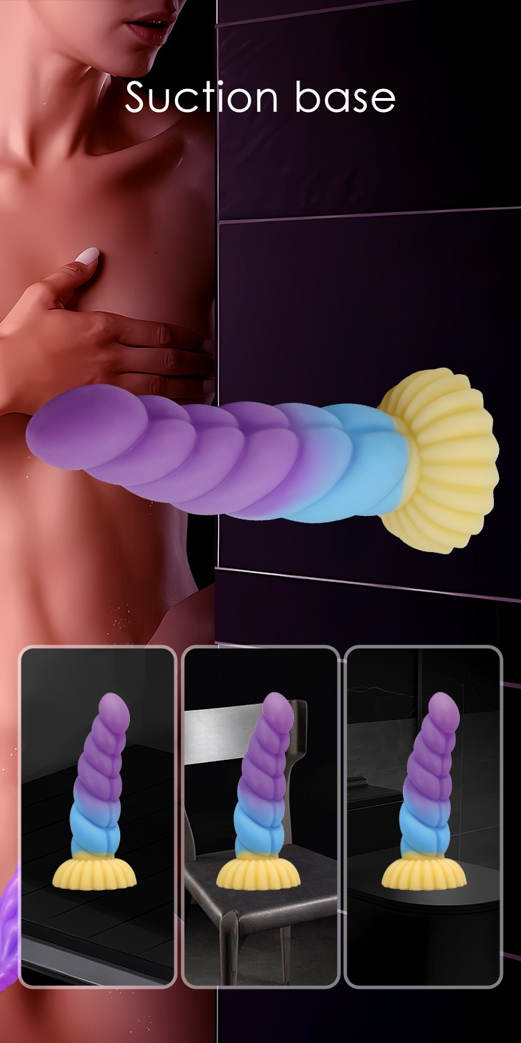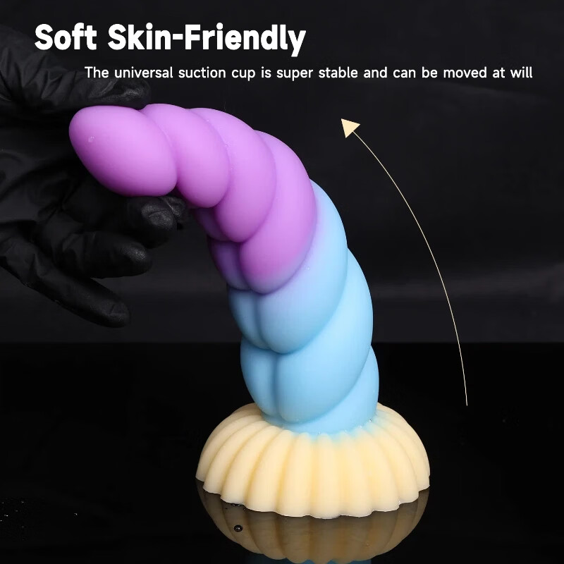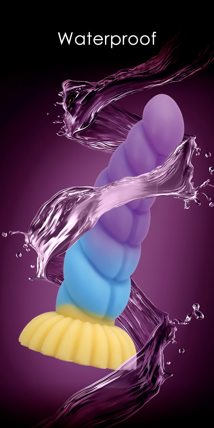 手持式仿真硅胶夜光阳具拼色麻花假阴茎假阳具女用自慰怪兽