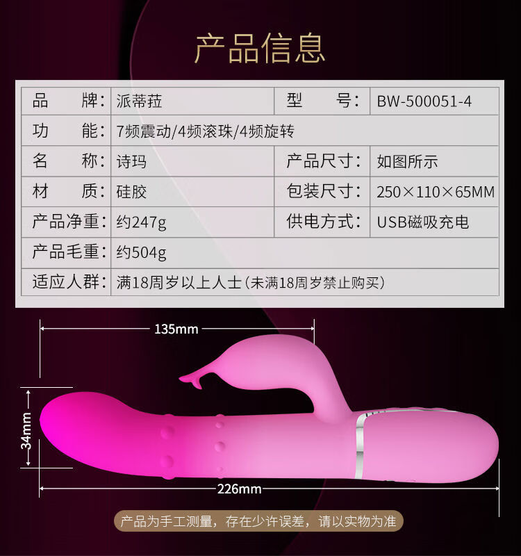 识音派蒂菈遥控C字型振动器USB充电硅胶自慰器百乐BW-014824W