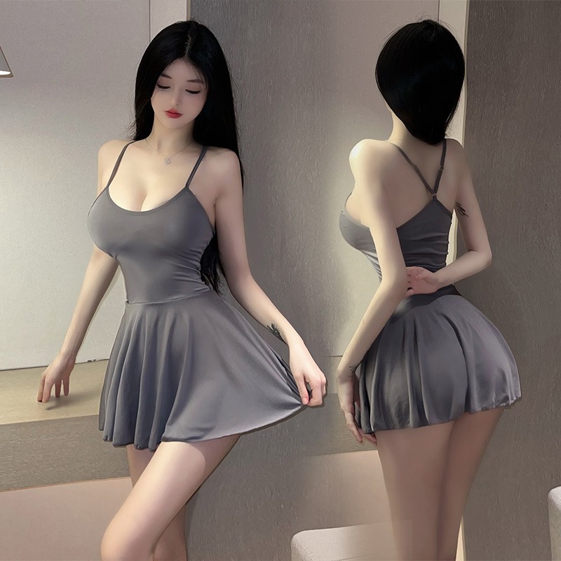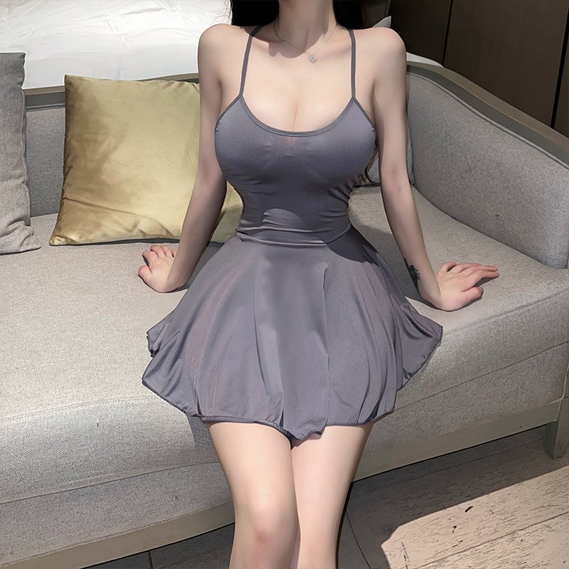 性感纯欲睡衣薄款女士冰丝无痕吊带大码遮肉包臀夜店情感趣味睡裙B9833