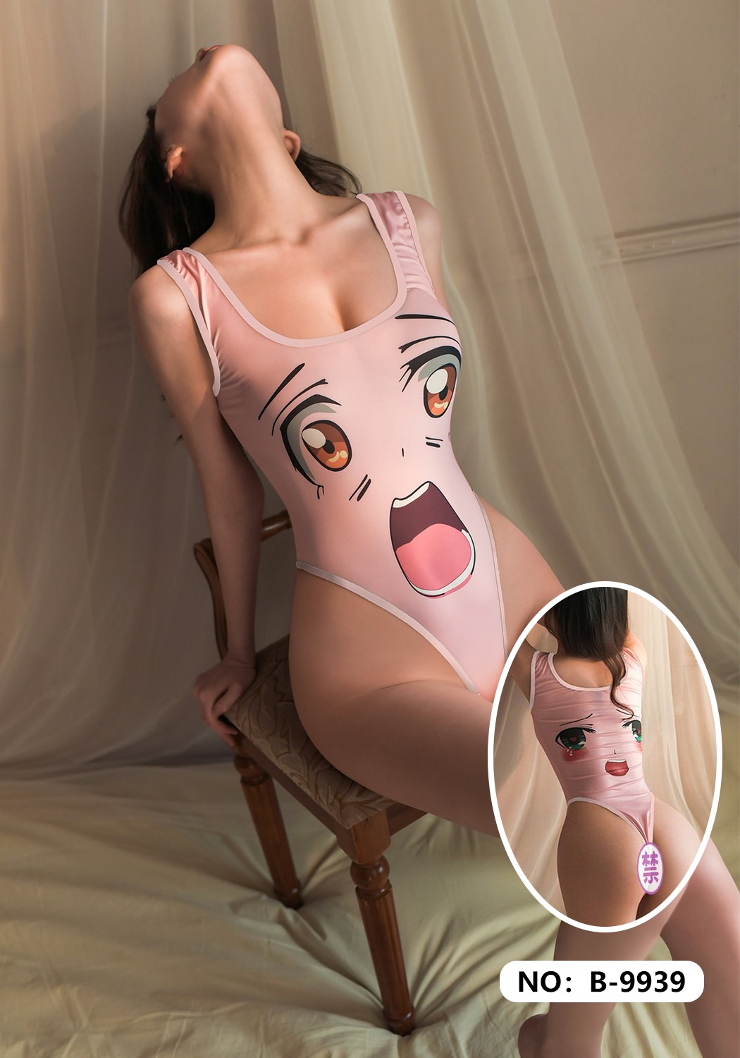 日系可爱死库水连体衣性感休闲泳衣女纯色体操服网红同款情调内衣B9939