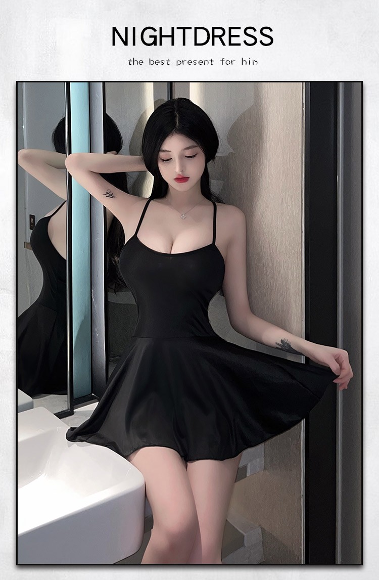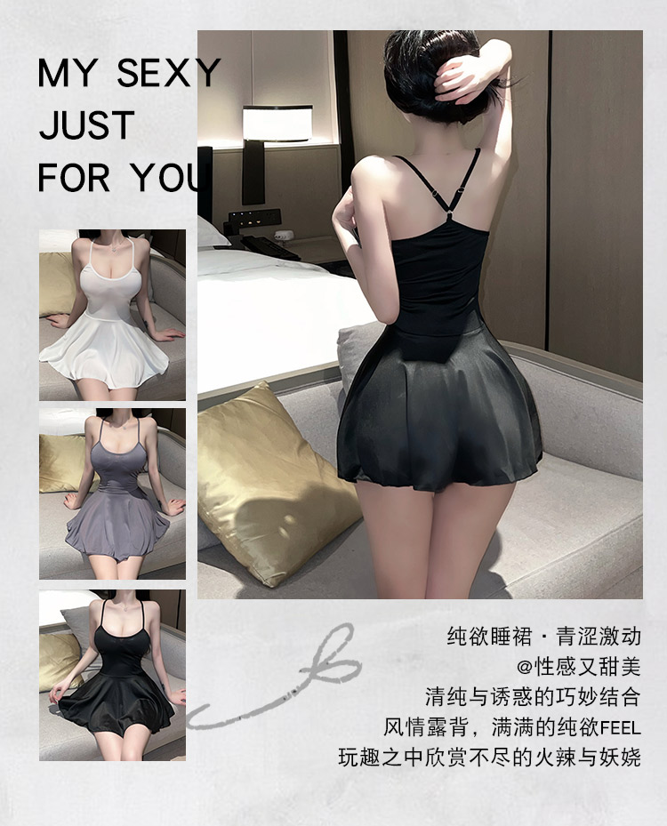 情趣内衣 性感吊带睡裙制服诱惑丝滑开档免脱睡衣 清纯可爱校园风夫妻房事刺激情趣套装 B9833