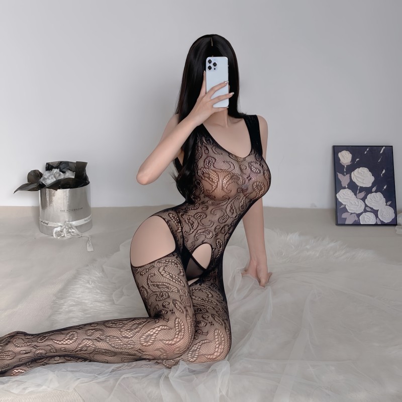 洛蔓希 情趣内衣 性感蕾丝开档连体衣制服诱惑 吊带镂空情趣睡裙 情趣套装H9932