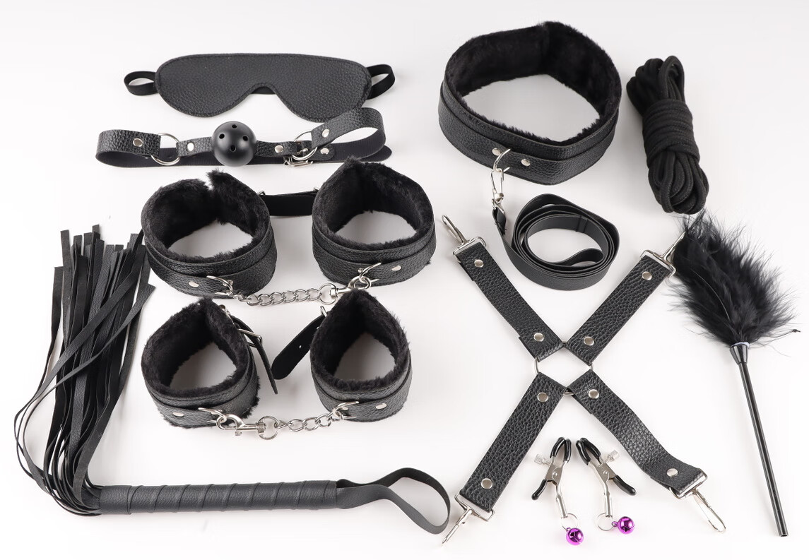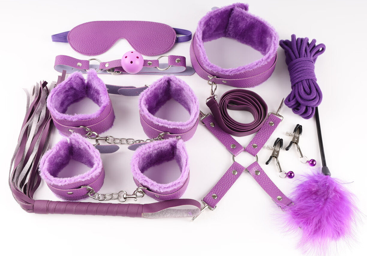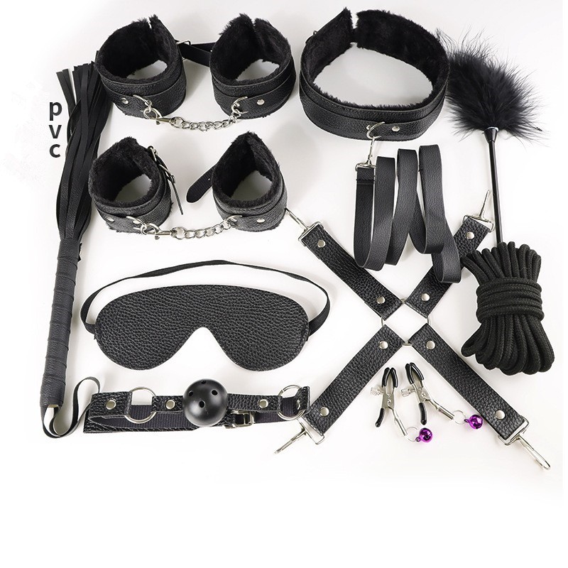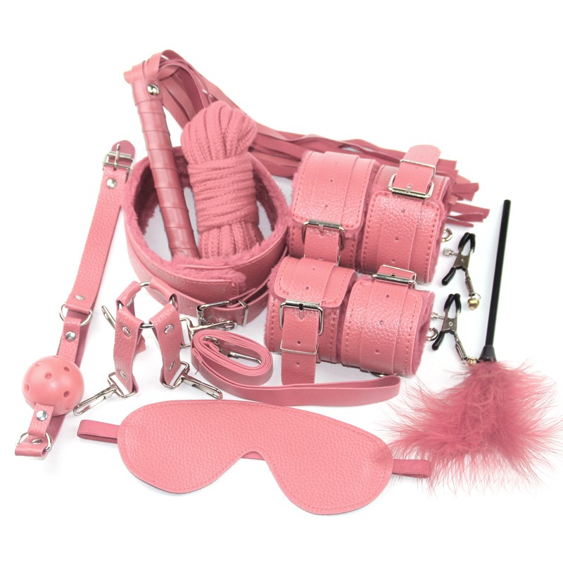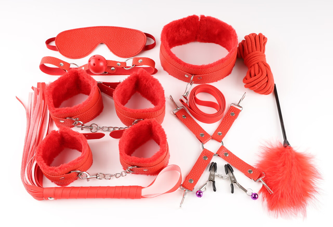 情趣荔枝纹SM套装成人用品夫妻调教手铐捆绑束缚11件套另类性玩具 红色荔枝纹
