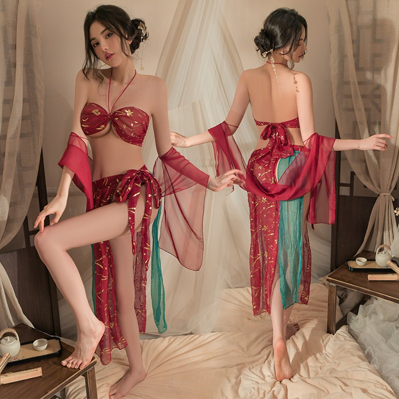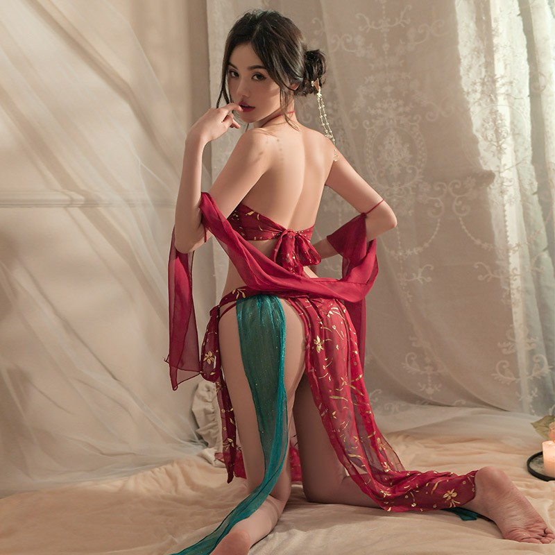 洛蔓希 情趣内衣 性感肚兜古装宫廷风纯欲汉服情趣睡衣 敦煌飞天凤女情趣睡裙套装W9993